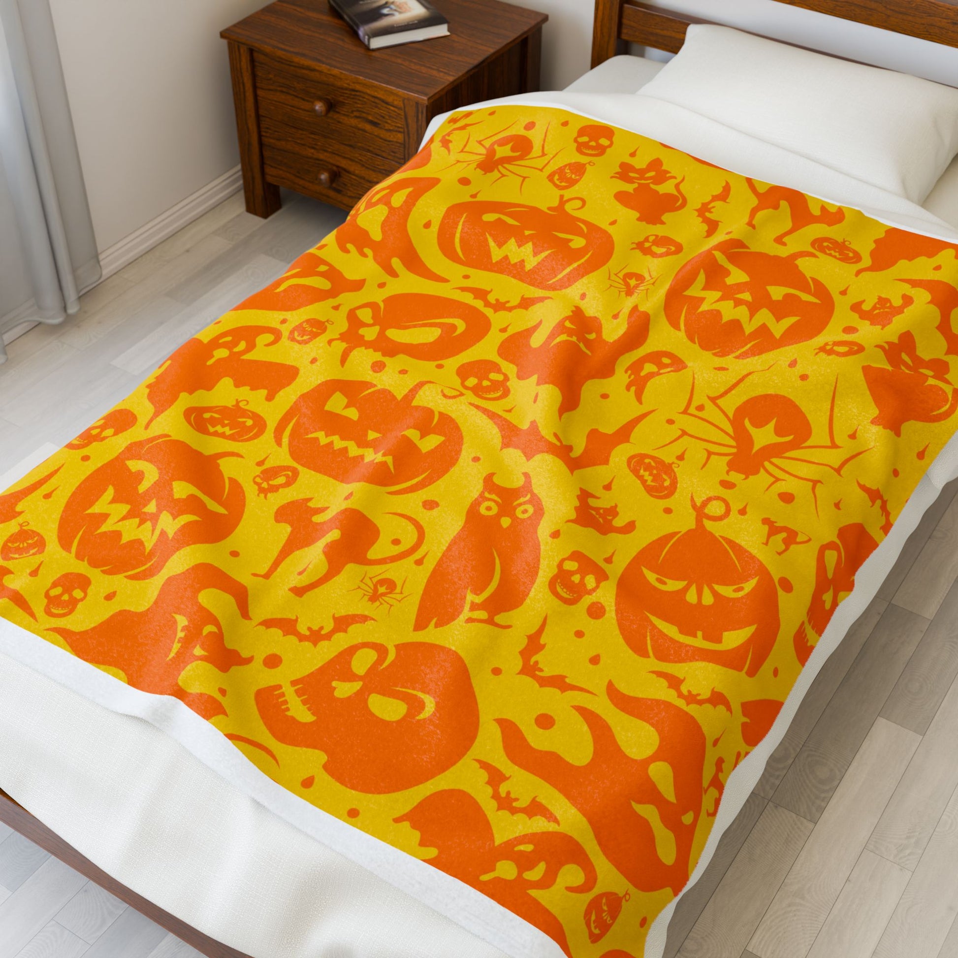 Halloween Plush Throw Blanket, Cozy Autumn Decor, Spooky Season Gift, Pumpkin Blanket, Soft Velveteen Throw